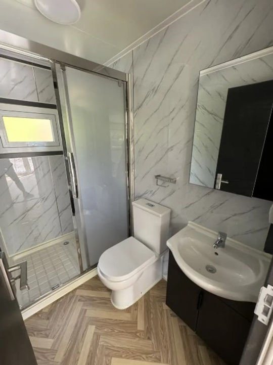 Bagno completo con doccia, WC e lavandino