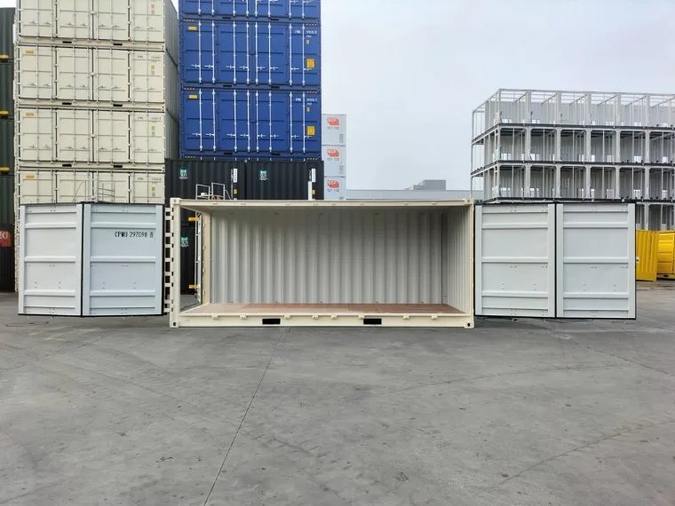 Nuovo container da 20 piedi con apertura laterale e accesso laterale completo. Antivento e impermeabile, ideale per lo stoccaggio di carichi ingombranti, officine e strutture commerciali mobili.