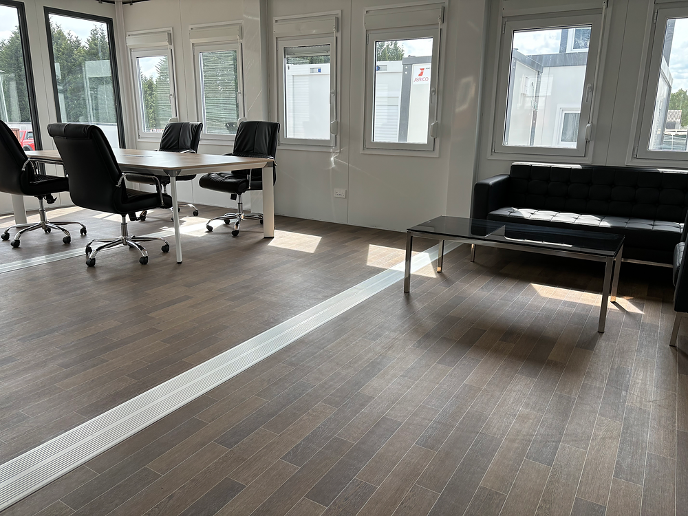 Questa unità modulare prefabbricata da quattro moduli rappresenta una soluzione professionale, versatile e confortevole per uffici, sale riunioni, spazi di cantiere o ambienti amministrativi. Con una superficie totale di oltre 58 m², è pronta all’uso e pensata per offrire efficienza, estetica e comfort.